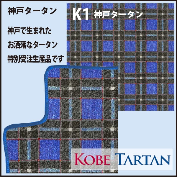 神戸で生まれたお洒落な「神戸タータン」でお作りする、特別受注生産のフロアマットです。納期は約2週間です。