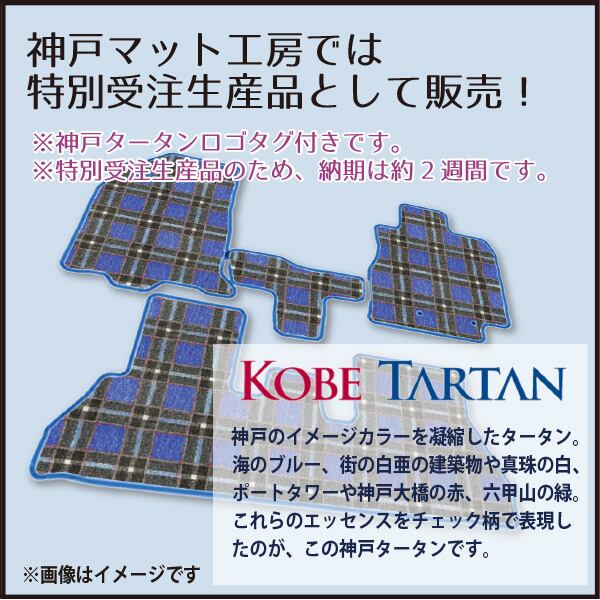 神戸で生まれたお洒落な「神戸タータン」でお作りする、特別受注生産のフロアマットです。納期は約2週間です。